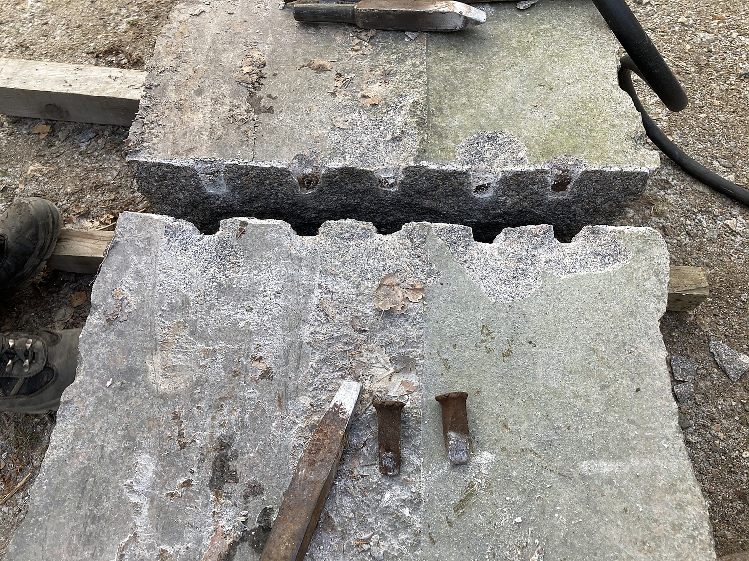 ''Att Plura'' is a special technique to split stone blocks with rather small iron wedges. It is somewhat similar to splitting with feathers and wedges (kil med bleck) but here the feathers are not used and the wedges are not longer than about 3 cm.