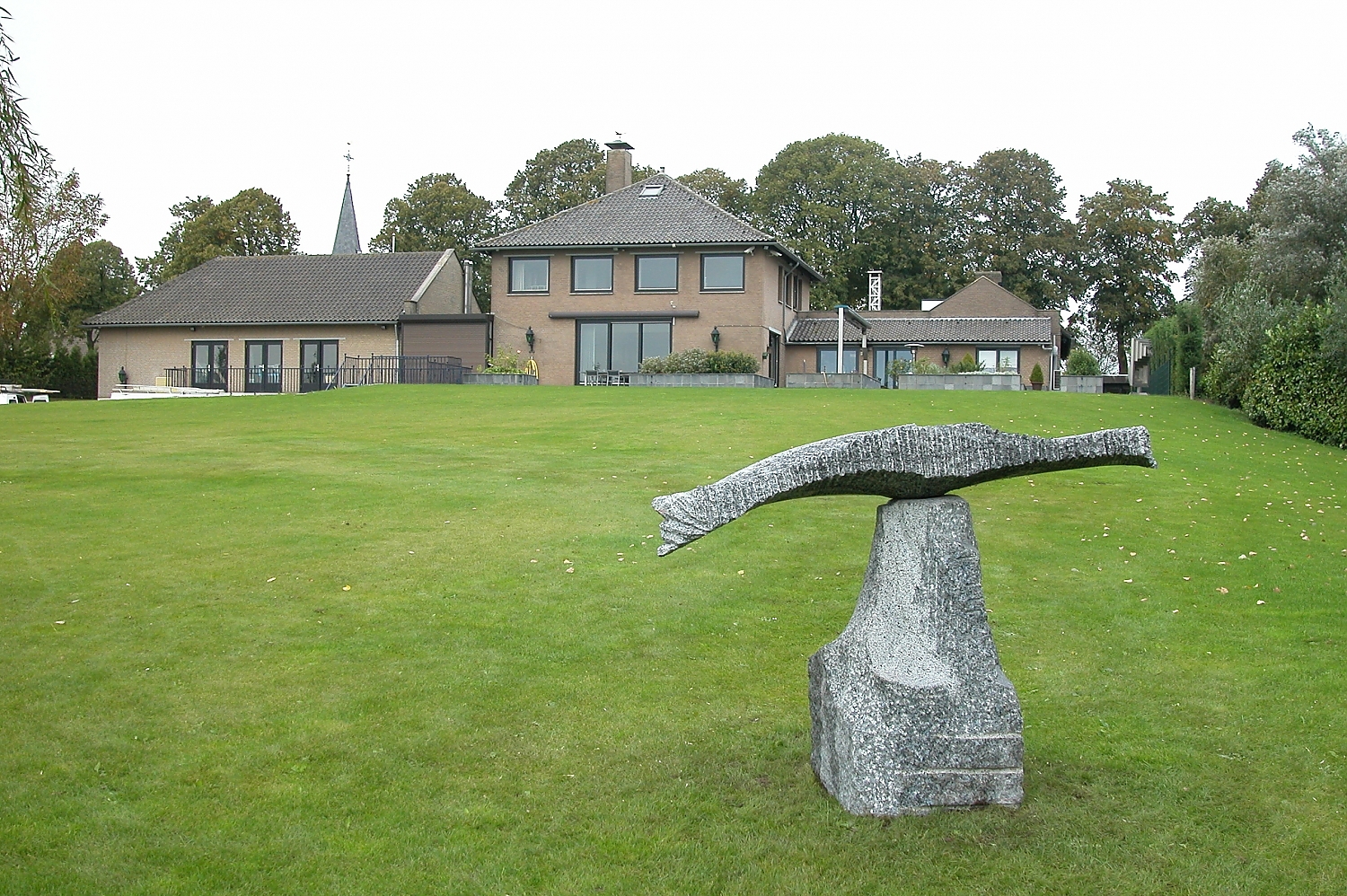 For Joop de Laat a pilot and flight enthusiast a special monument was designed for his ash-urn to be placed in. The urn is inserted in the base of the monument. The monument its self is placed in the garden of the house he and his wife lived in. In case of a selling of the estate the monument will be replaced at the local graveyard.